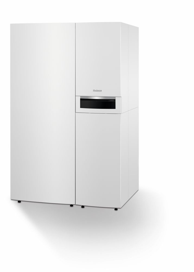 Das Gas-Brennwert-Hybridsystem ist die kompakte Basis, von der aus die Wärme hocheffizient verteilt wird. Durch die Nutzung von regenerativen Energien wird die Effizienz der Gasbrennwerttechnik zusätzlich verbessert.