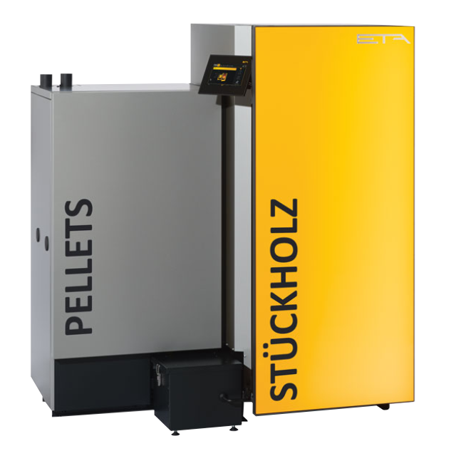ETA hat die ideale Lösung für alle, die den extrem günstigen Brennstoff Holz nutzen und trotzdem nach Lust und Laune Vollautomatikkomfort genießen möchten. Der ETA TWIN besteht aus zwei vollwertigen Kesseln, die einander perfekt ergänzen. Der ETA SH Scheitholzkessel kann mit Flansch bestellt werden, an den ein vollautomatischer Pelletskessel einfach angeschlossen werden kann - und zwar auch Jahre später ohne Umbau am Heizsystem oder der Kaminverbindung.