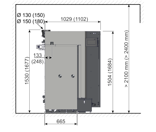 Füllrauminhalt des Stückholzkessels | Liter | 150 | 223 | ||||
