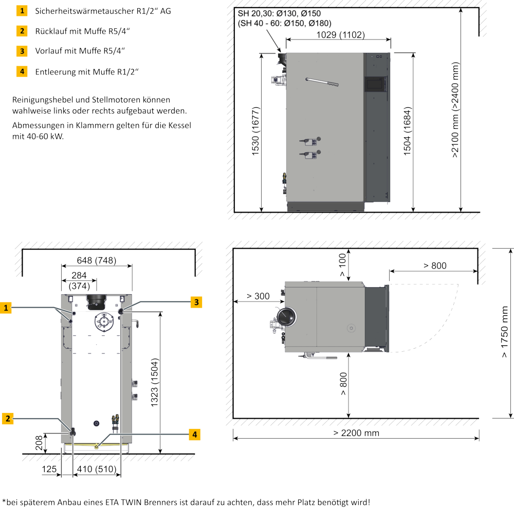 | Puffervolumen | Liter | >1.100, optimal 2.000 | >2.200, optimal 3.000 | |||