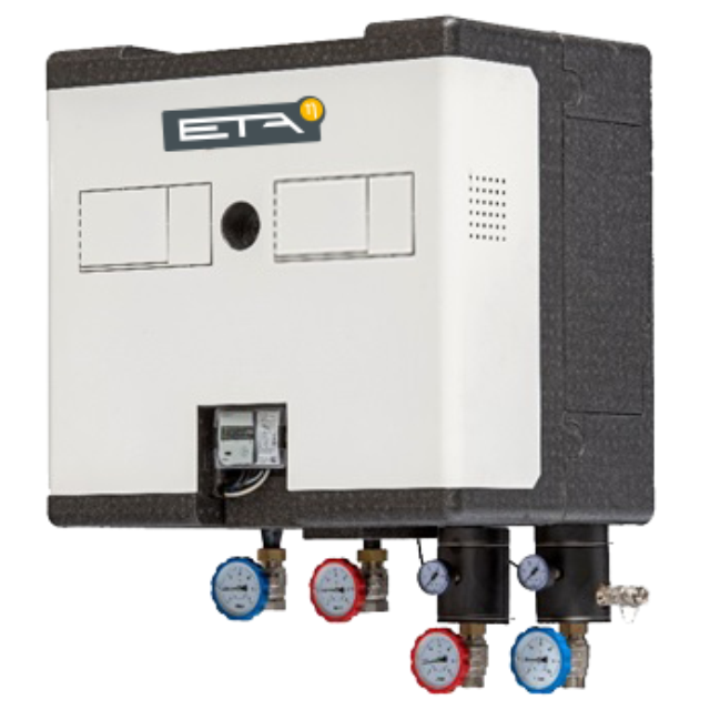 Die ETA Übergabestationen sind in 5 Leistungsgrößen erhältlich. Diese kompakten Wärmeübergabestationen dienen zum direkten Anschluss an Fern- und Nahwärmeanlagen für eine indirekte Betriebsweise.