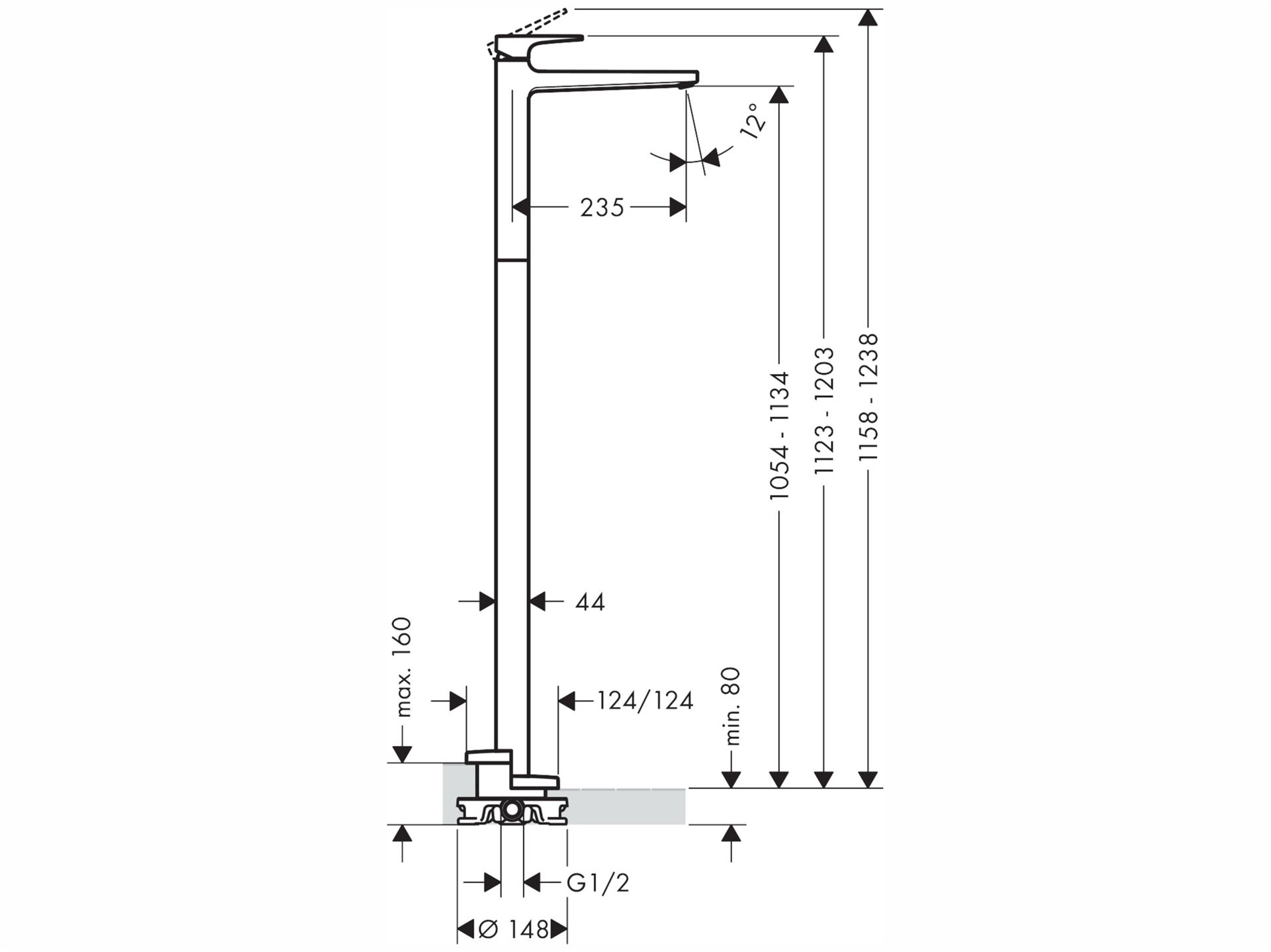 Einhebel-Waschtischmischer mit Hebelgriff bodenstehend ohne Ablaufgarnitur