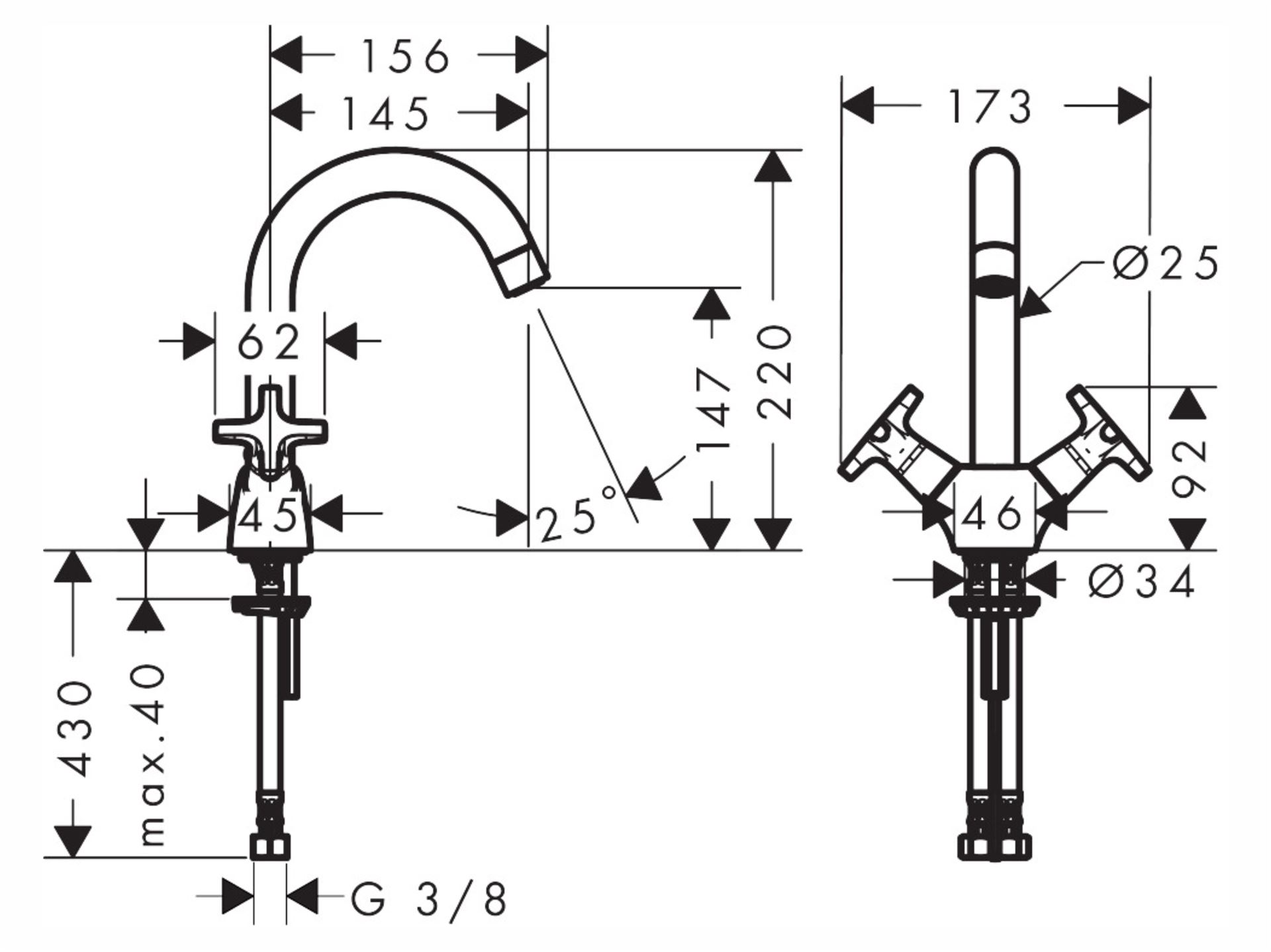 2-Griff Waschtischmischer LowPressure ohne Ablaufgarnitur