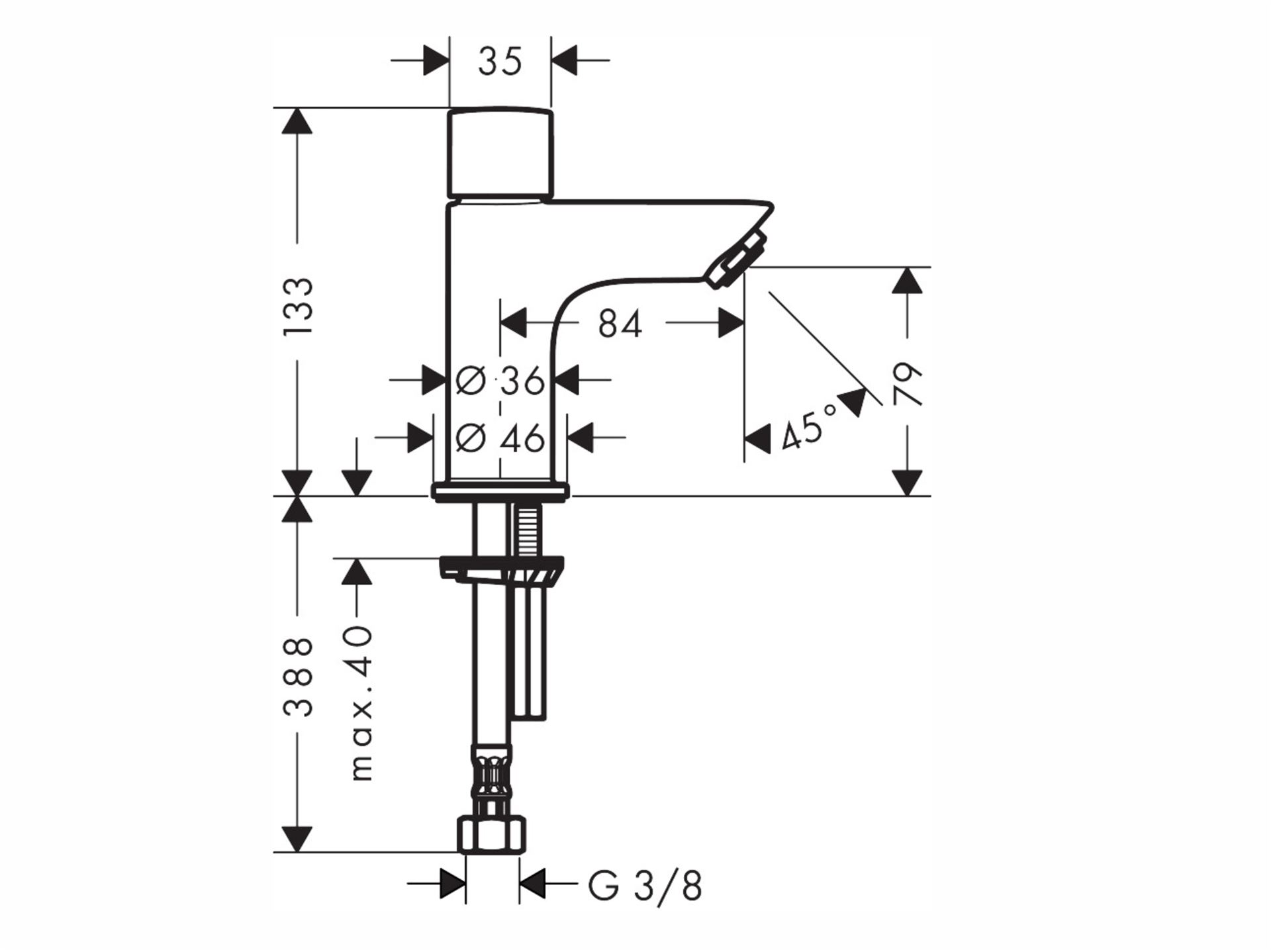 Standventil 70 ohne Ablaufgarnitur "Hot"