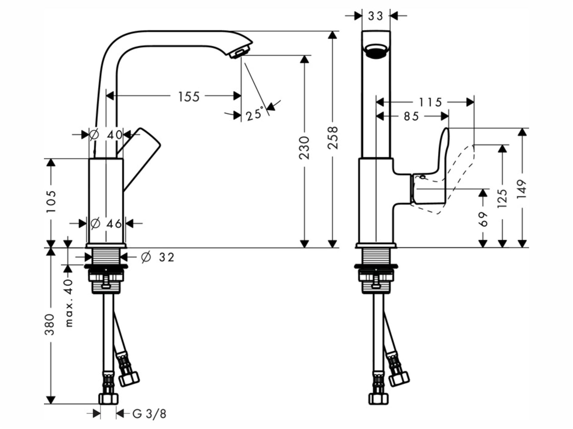 Einhebel-Waschtischmischer 230 ohne Ablaufgarnitur