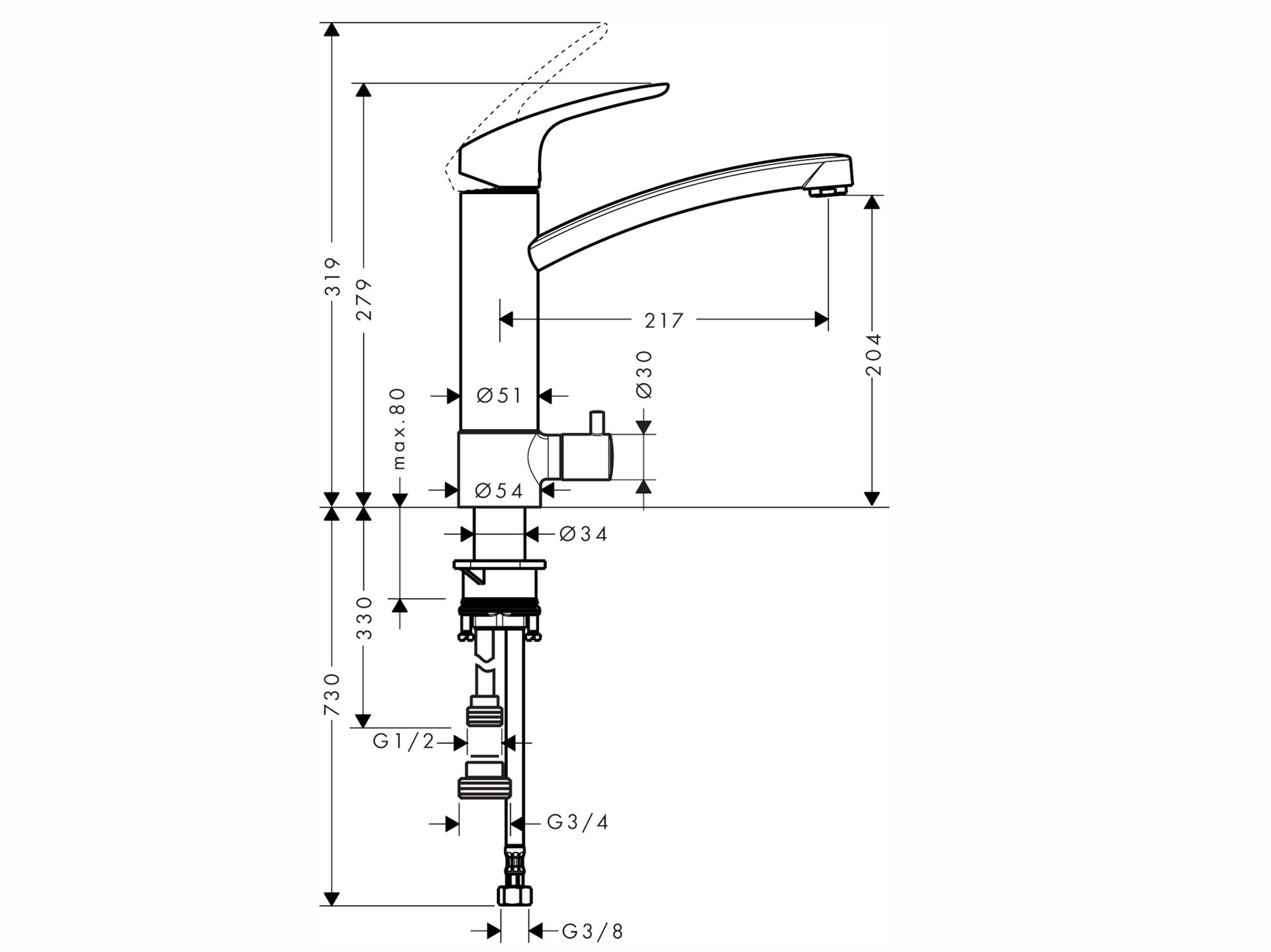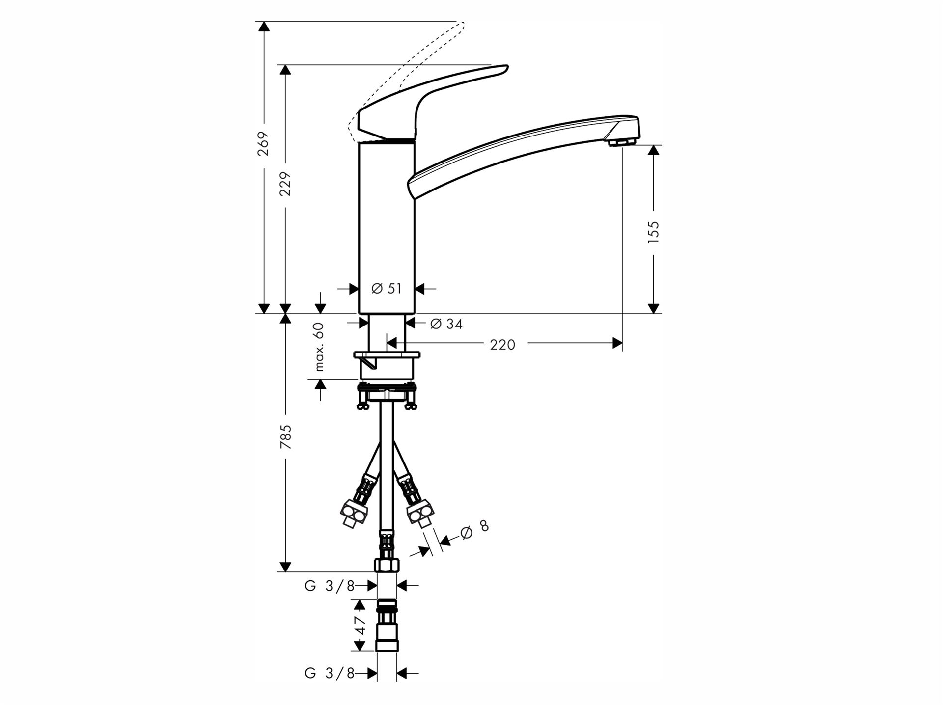 Einhebel-Küchenmischer 160 für offene Warmwasserbereiter