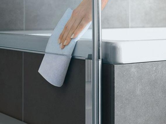 Die KERMI Pflegeleicht-Beschichtung KERMIclean für Echtglas ist eine ideale Option, wenn Sie noch weniger Reinigungsaufwand wünschen. Eine spezielle Oberflächenbeschichtung verhindert, dass sich angetrocknete Wassertropfen, Seifenreste, Schmutz- und Kalkspuren hartnäckig festsetzen können. Und übrigens auch Keime und Bakterien, was für eine verbesserte Hygiene sorgt. Natürlich ist die Beschichtung kein „Wundermittel“, das Ihnen die Pflege erspart. Aber wenn Sie einmal keine Zeit dafür haben, halb so schlimm. Vergleichbar mit der Antihaft-Beschichtung Ihrer Bratpfanne lassen sich Rückstände deutlich leichter lösen. Weiterer Pluspunkt: Sie brauchen viel weniger Reinigungsmittel, was Ihrem Geldbeutel genauso zugutekommt wie der Umwelt.