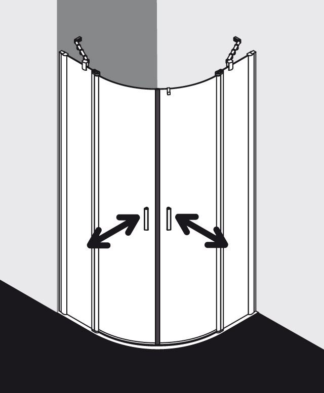 Viertelkreis-Duschkabine Serienhöhe 2017 mm.
