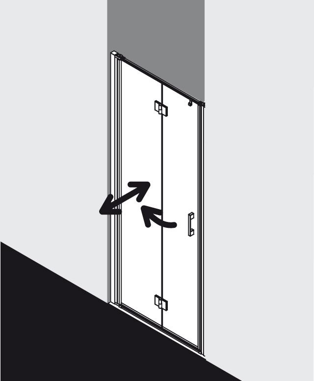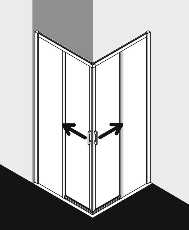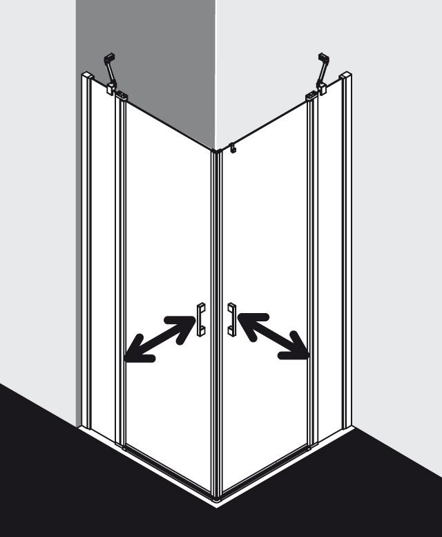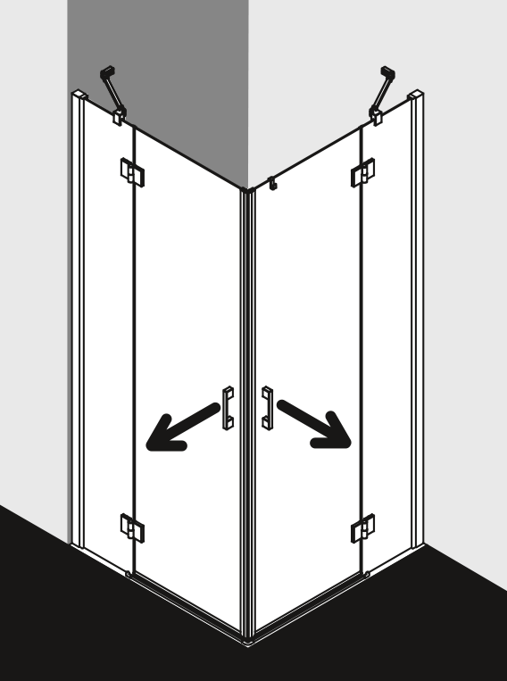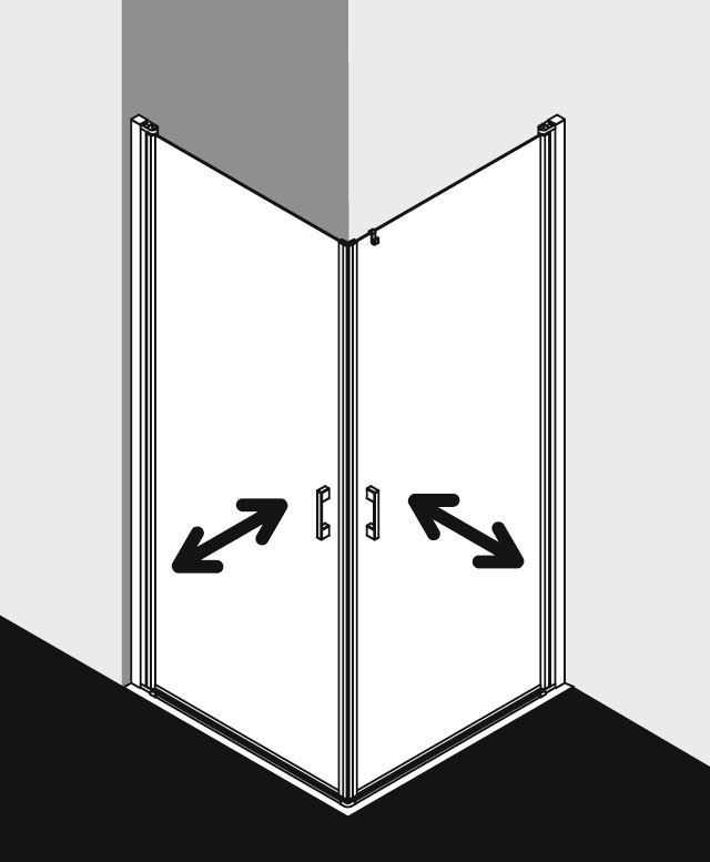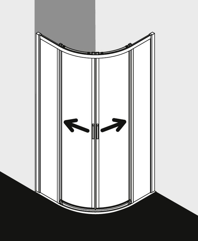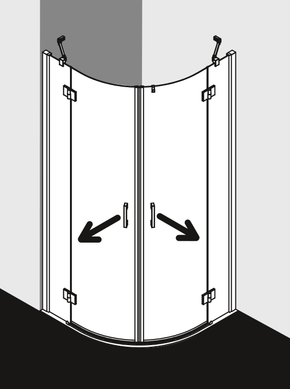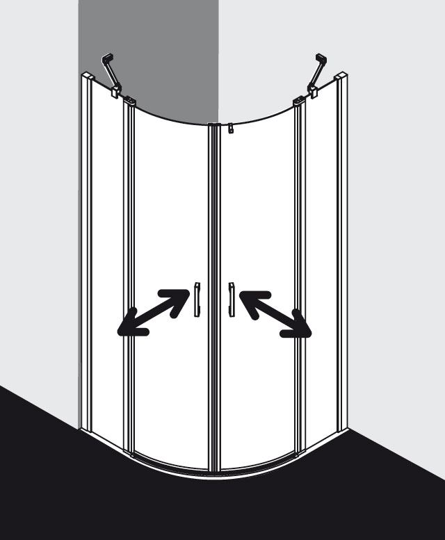 Viertelkreis-Duschkabine (Schwingtüren, Gleittüren) Serienhöhe 2000 mm.