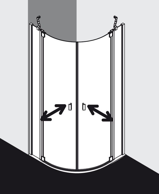 Viertelkreis- und Halbkreis-Duschkabine Serienhöhe 2000 mm.